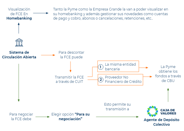 Con el fin de brindar mayor facilidad en el uso de la Factura de Crédito Electrónica (FCE) para el financiamiento Pyme, la Secretaría de la Pequeña y Mediana Empresa resolvió autorizar al Banco Central a implementar el Sistema de Circulación Abierta como herramienta para la circulación extrabursátil, negociación, transmisión y cancelación de FCE.
